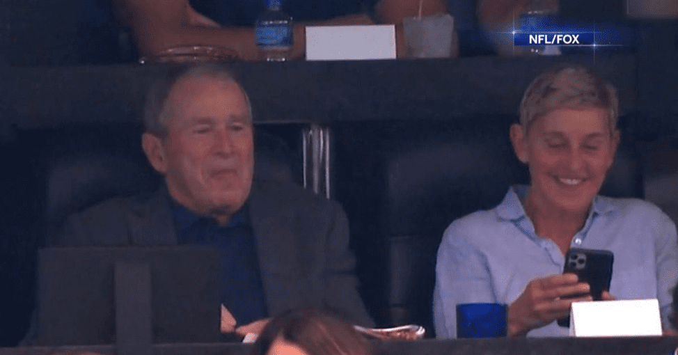 On Sunday, Ellen and her wife Portia de Rossi were invited to a Dallas Cowboys game in Arlington by Charlotte Jones, the daughter of Cowboys owner Jerry Jones. All was well and good until this image of President Bush and Ellen laughing started circulating the web.